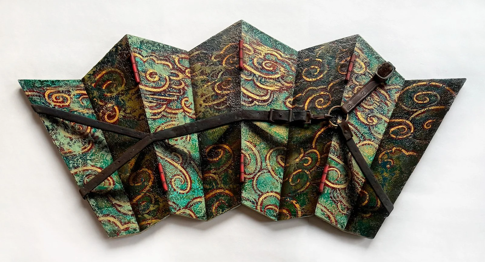 Jason will guide a relaxed tour of the works on view, sharing the stories, inspiration, and creative process behind each piece. Some of his works are calm and meditative, featuring atmospheric waterscapes, mandala-inspired forms, and rhythmic patterns that invite the viewer into a quiet, contemplative space. Others use trompe l’oeil and visual illusion to play with perception. At first glance, some pieces appear to have physical folds or dimensional surfaces, while others seem to feature real woodgrain, metal, or rust. Upon closer inspection, viewers discover that every detail is carefully painted on a flat, two-dimensional surface. All of Jason’s work invites you to slow down, look more closely, and connect with your inner experience.